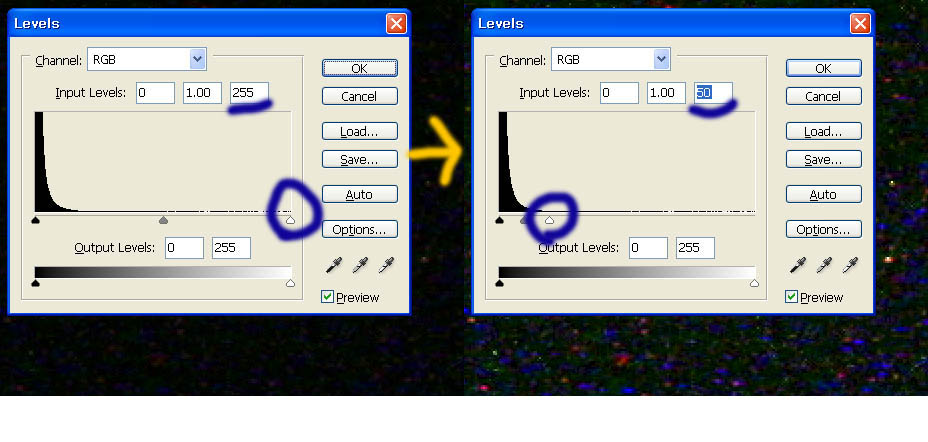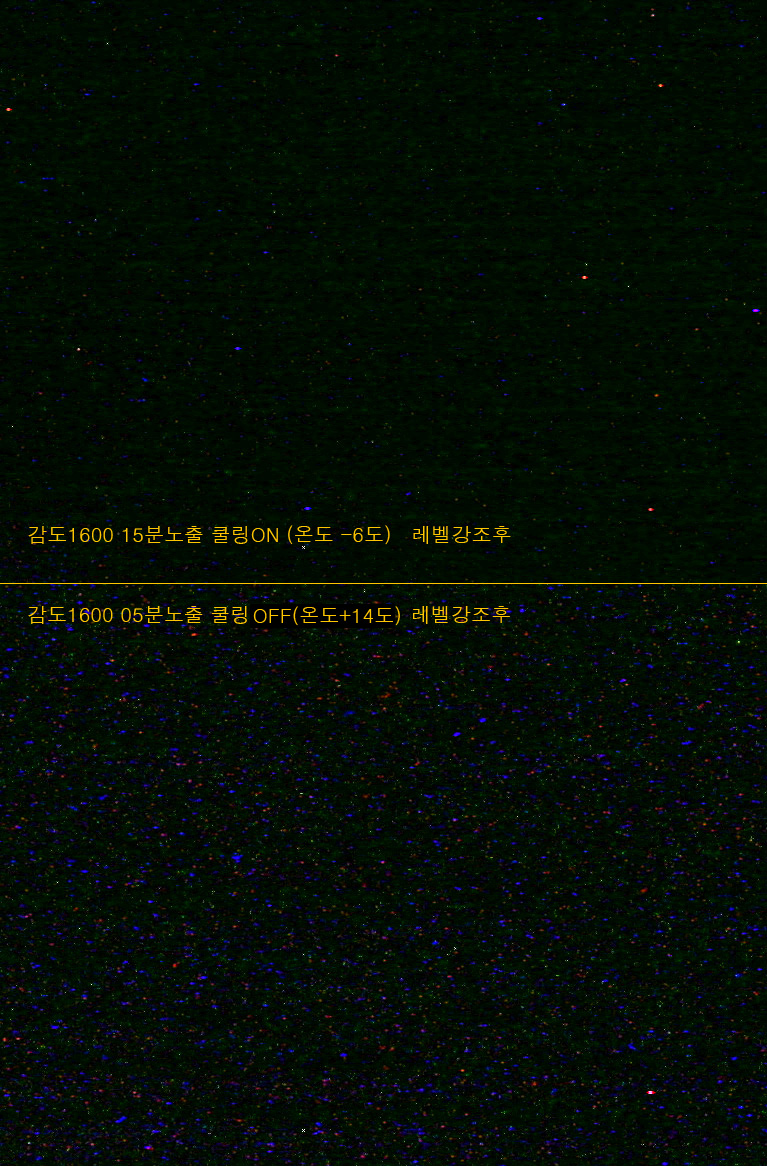 쿨링한 15분 노출이미지의 역시 좌 상단 동일부분을 실제 픽셀로 두고