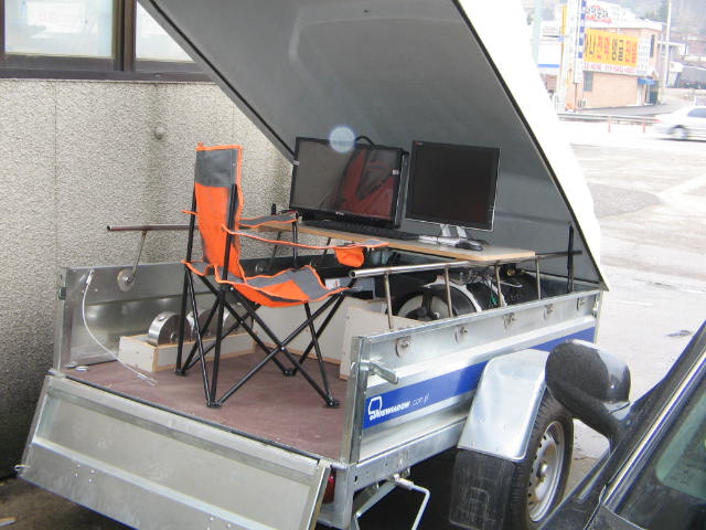 트레일러에 책상을 올렸습니다. 책상은 슬라이드식으로 만들어 추우면 관측소 안에서 안추우면 밖에서 사용할수 있도록 하였습니다.