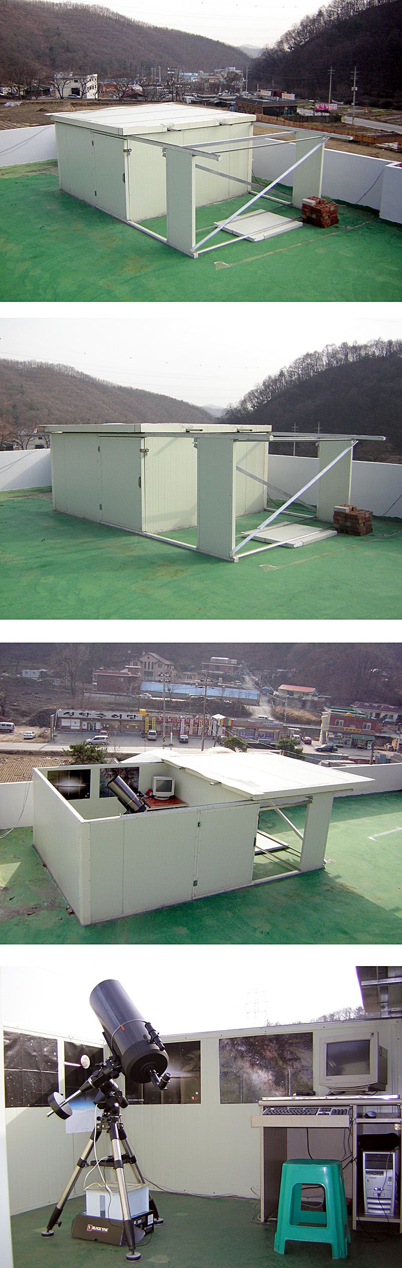 내부도 천체사진 브로마이드로 인테리어(?)를 꾸미고 데스크탑PC에 네트워크연결, 삼각대에 진동흡수 댐퍼설치 등 여러가지 꾸미고나니 허전했던 예전과는 달리 제법 그럴듯한 모습입니다. ^^