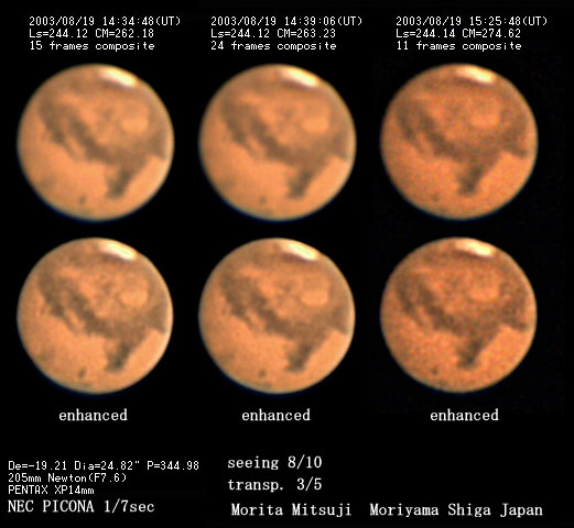 極冠が随分小さくなり、反射も強くなっているようにも見えます。