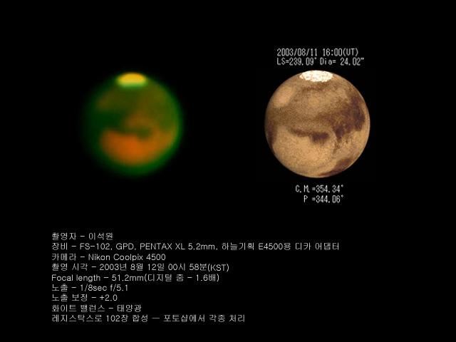 8월 12일에 찍었던 화성을 가지고 포토샵에서 이것저것 손본 것입니다.