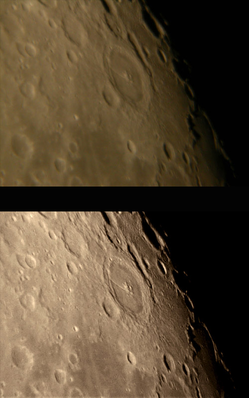 3. 흑백모드 전환하는 것은 달의 고배율 확대에만 유용하며 컬러모드일 경우와 비교하여 언샵에 대한 색 채널별 노이즈의 편차를 줄여 줍니다.