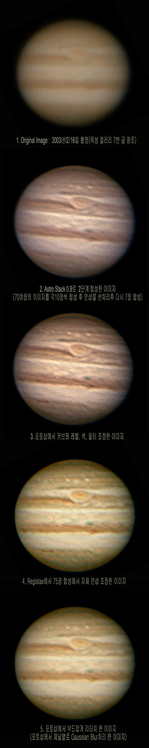 1. 목성을 예전에 겔러리에 올렸던 것을 Registax로 다시 처리 해 보았습니다.