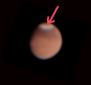 남극관에 보이는 미립자들의 퇴적층이 태양의 빛과 열을 보다 더 많이 흡수하게 됨으로서 지금까지 보다도 더 빨리 남극관의 크기가 축소되어가지 않을까 한다. 1번의 예와도 관련이 있는 예측으로 화성이 하지점을 향함으로 해서 남극관이 축소하는데 예년보다 더 빨리 축소가 되어 갈 것이다. 이에 따라 화성 대기중에 수분이 많이 공급됨에 따라 저 위도 지방에 빙정운도 활발히 활동할 것으로 예상함. 다만 대기의 온도가 상기의 이유로 높아진다면 빙정운이 발생할 확률도 적어지게 되고 현재 관측결과와 같이 빙정운이 적은 것과도 연관이 있다. 지금까지의 예측 결과에 따라 예년의 계산대로라면 11월 말에 남극관이 소멸한다는 계산이 나오지만 현재로 봐서는 11월 초에 남극관이 소멸할 것으로 예상함. 주목해야 할 점은 화성대기의 이러한 돌발 현상이 화성의 표면이나 전체적인 룰에 얼마나 영향을 줄 것인가 하는 것이다. 아마튜어에게는 지속적이고 끈질기며 치밀한 관측거리라 할 수 있다.