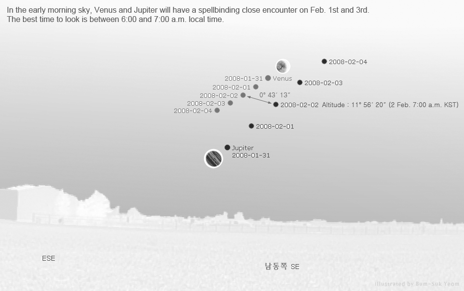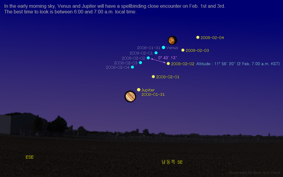 In the early morning sky, Venus and Jupiter will have a spellbinding close encounter on Feb. 1st and 3rd.