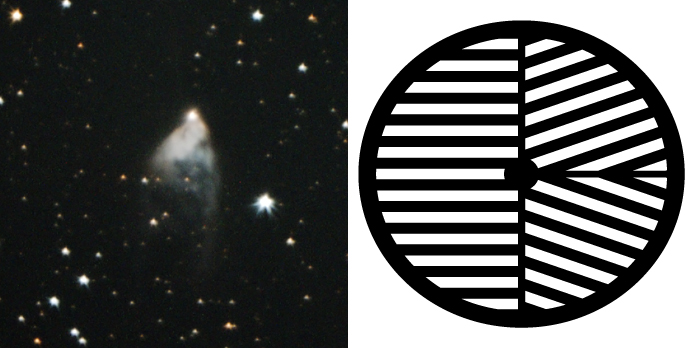 만들어간 마스크(아래 사진 오른쪽)를 경통 앞 부분에 설치하고 베텔기우스를 겨냥하였습니다.
